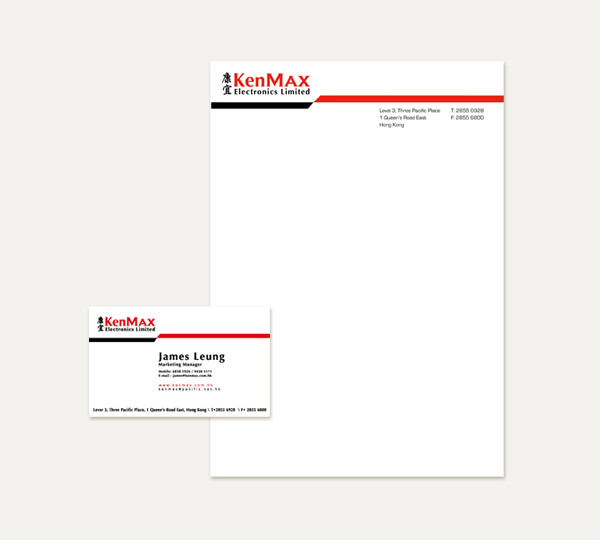 As an electronic product company which sells equipments to help businesses in delivering valuable messages to their customer, I used the solid red and black lines to represent the connection between them. The same design element is used in the whole brand design, including brochure, name card and website. This is done to enforce the image.