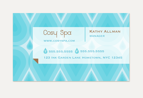 A business card design for a spa. The symbol were designed based on a motif of water drops, representing the idea of spa.
