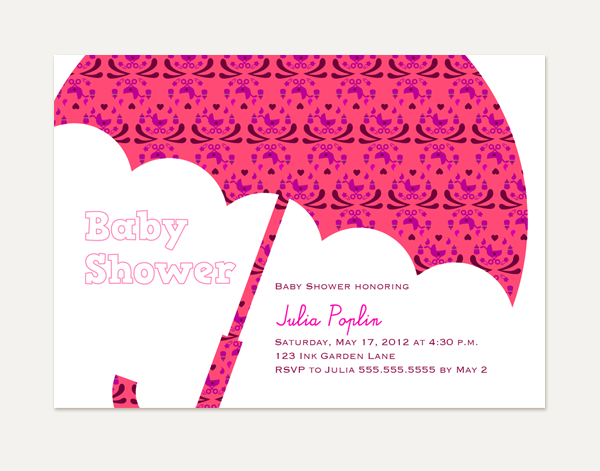 A invitation card design for baby shower. I used the baby stroller and baby bottle patterns inside the umbrella to show a modern and chic feeling.