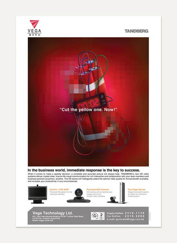 Tanberg is an video conferencing product company. My concept illustrates that in order to success in the business world, it is essential to have a clear visual when you need to make immediate decision. But if you cannot get a clear understanding of what's happening, how could you make the right decision? It is a metaphor that correct visual communication is very important as every seconds count.